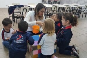 [vc_row][vc_column][vc_column_text]Como parte do projeto “Sensações” do Maternal A, os alunos vivenciaram duas atividades que exploraram o tato, o olfato, a visão e o paladar: com a caixa tátil e sentiram a textura do sal grosso e experimentaram frutas na cor
