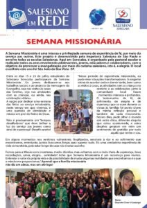 Entre os dias 15 e 23 de julho, 78 estudantes do Salesiano Sorocaba participaram da Semana Missionária. A Semana Missionária é uma intensa e privilegiada semana de experiência de fé, por meio do serviço aos outros. Este projeto é desenvolvido
