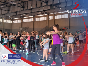 No Salesiano as homenagens às mães não acabam! Depois de abraços, lembrancinhas e tantos mimos hoje foi dia de colocar as mamães em forma! Os professores de educação física prepararam diversas atividades esportivas e recreativas em que mães e filhos