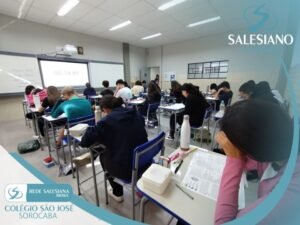 Os alunos da 3ª série do ensino médio realizaram, nesta segunda-feira (24/3), o primeiro dia do simulado SAS-ENEM 2025. A nova parceria Salesiano | SAS oferece uma experiência exclusiva para os alunos. No dia 31/3 será o segundo dia de