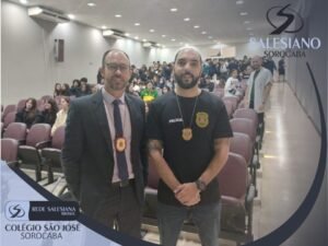 Nos dias 3 e 7 de abril, agentes da polícia civil, liderados pelo Delegado Dr. Rodrigo Ayres, foram convidados para uma conversa com os jovens do 9º ano e do Ensino Médio para alertá-los sobre os riscos de usar, portar