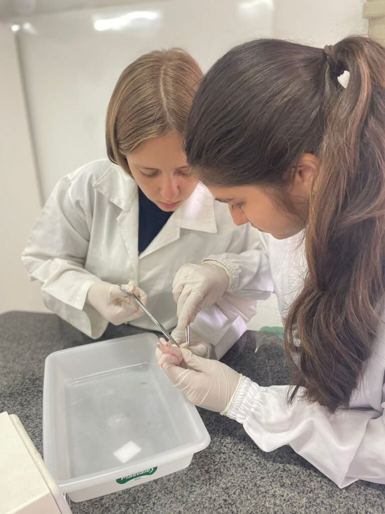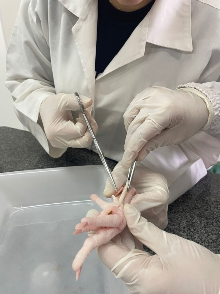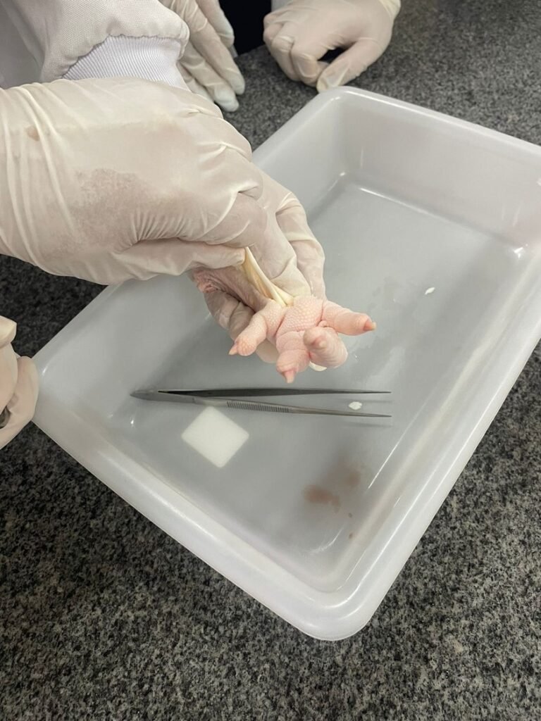 Segundo a professora Natali: “A experiência foi incrível: ao puxar os tendões do pé, os estudantes puderam ver os “dedos” se estenderem e flexonarem instantaneamente! Foi a demonstração perfeita de como essa conexão é vital para o movimento”.