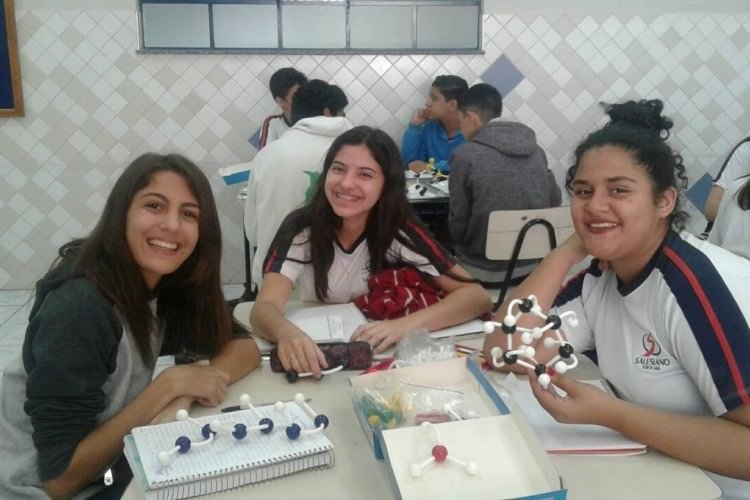 Aula de química com a professora Eliara no 9º ano B sobre moléculas: aprendendo de forma divertida!