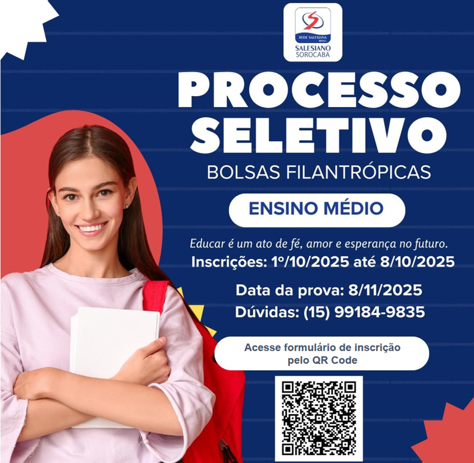 Estamos com inscrições abertas para participar do processo de bolsas – apenas para o Ensino Médio. Aponte a câmera do seu celular para o QR Code e saiba como participar.