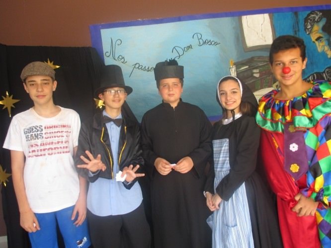[vc_row][vc_column][vc_column_text]Nos dias 16 e 17 de outubro de 2015 os alunos do 8º ano do Ens. Fundamental, sob a supervisão das professoras Janete (Língua Portuguesa) e Maria Esmeralda (Ed. Artística), apresentaram aos demais alunos, pais e convidados o resultado do trabalho realizado ao longo de 2015 em comemoração aos 200 anos de Dom Bosco. Durante a etapa de preparação assistiram ao filme “Uma vida para os jovens” para resgate da trajetória de Dom Bosco e contextualização de sua importância nos dias atuais, Num segundo momento, assistiram ao filme “A Noviça Rebelde”, que em 2015 comemora 50 anos, como inspiração para montagem de um teatro musical. Na sequência, professoras e alunos levantaram sete contextos atuais em que os jovens estão expostos e vulneráveis a influências ruins: consumo de drogas, bebidas alcoólicas, abandono, uso desmedido de dispositivos eletrônicos, bullying, violência e depressão. Os roteiros foram criados tendo como base tais contextos, sem esquecer a presença daquele que, como Dom Bosco e Maria (noviça), enxerga esse jovem, procura resgatá-lo e salvá-lo com amor, carinho e muita atenção. Ao final contemplamos um ensaio maravilhoso onde, além dos atores que representaram no palco, a produção dos cenários digitais, o vídeo explicativo do projeto a caracterização das personagens e a recepção dos convidados foi todo desenvolvido pelos alunos sob supervisão das educadoras.