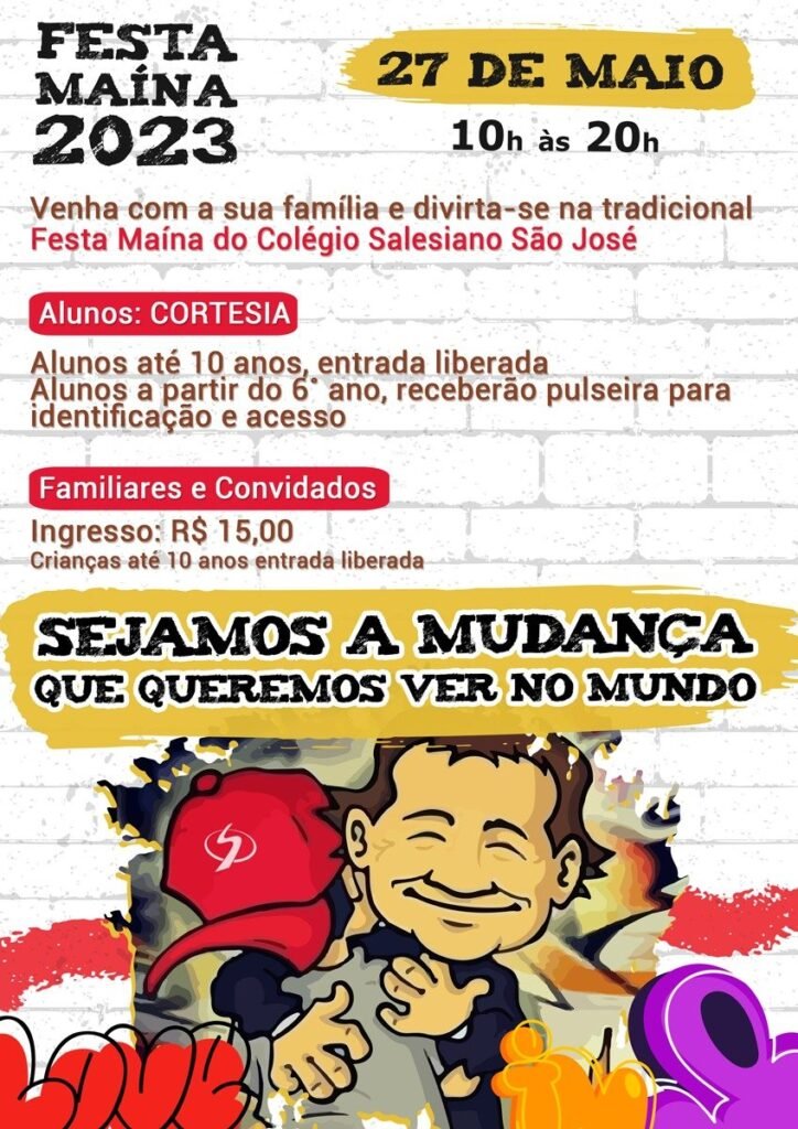 No dia 27 de maio realizaremos a tão esperada Festa Maína, este ano o tema é “Sejamos a mudança que queremos ver no mundo”. Nossos estudantes já estão fazendo valer a pena, não perca a festa mais gostosa e tradicional de Sorocaba!!