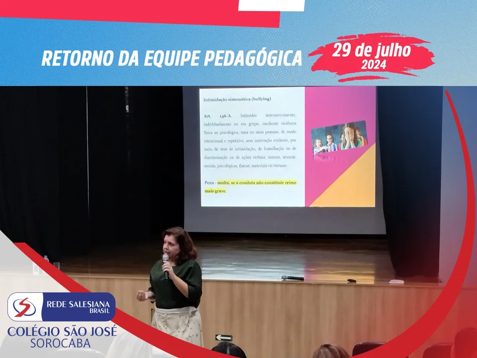 Após a acolhida carinhosa do irmão Jean, recém chegado para compor a equipe de pastoral, a direção deu oficialmente as boas-vindas a todos. Neste significativo dia de planejamento foram trabalhadas as temáticas “Prevenção ao bullying e ao cyberbullying” e “Acomodações sensoriais”, respectivamente pelas profissionais Joseana Moreira; Regiane de Proença e Marina Barros.