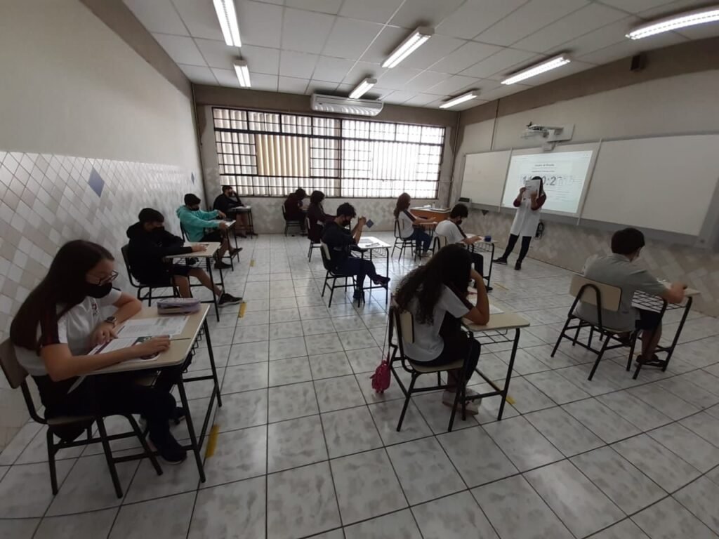 Com o objetivo de preparar os estudantes do 9º ano para os vestibulares e ENEM, em parceria com a Plataforma Evolucional, os alunos participaram do simulado impresso presencial, seguindo o protocolo de segurança.
